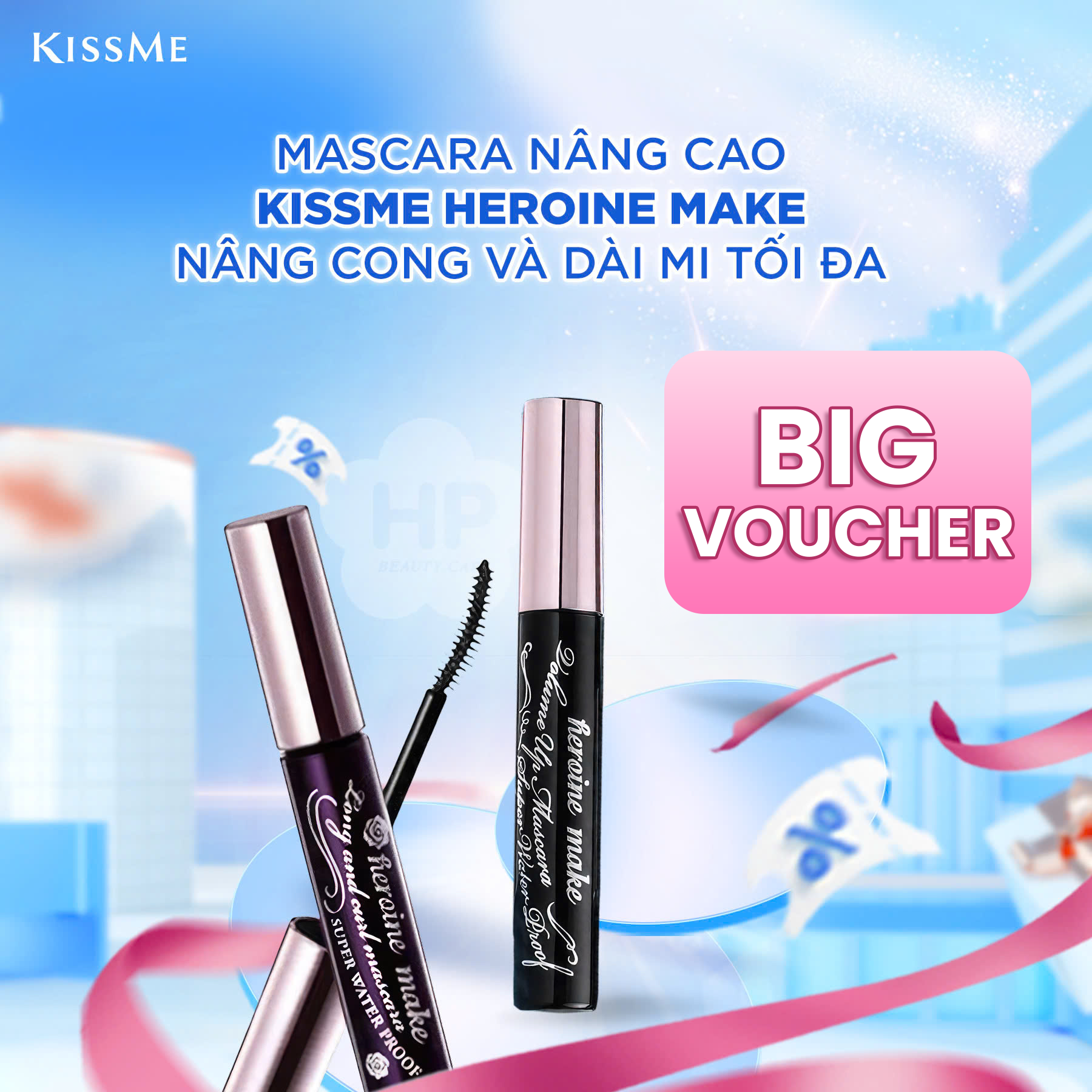 Thương hiệu: Kissme Xuất xứ: Nhật Bản HSD: 5 năm kể từ ngày sản xuất 1. Mascara Nâng Cong Dài Mi (6g): Mascara màu đen tuyền có chất mực được chiết xuất từ Nhân