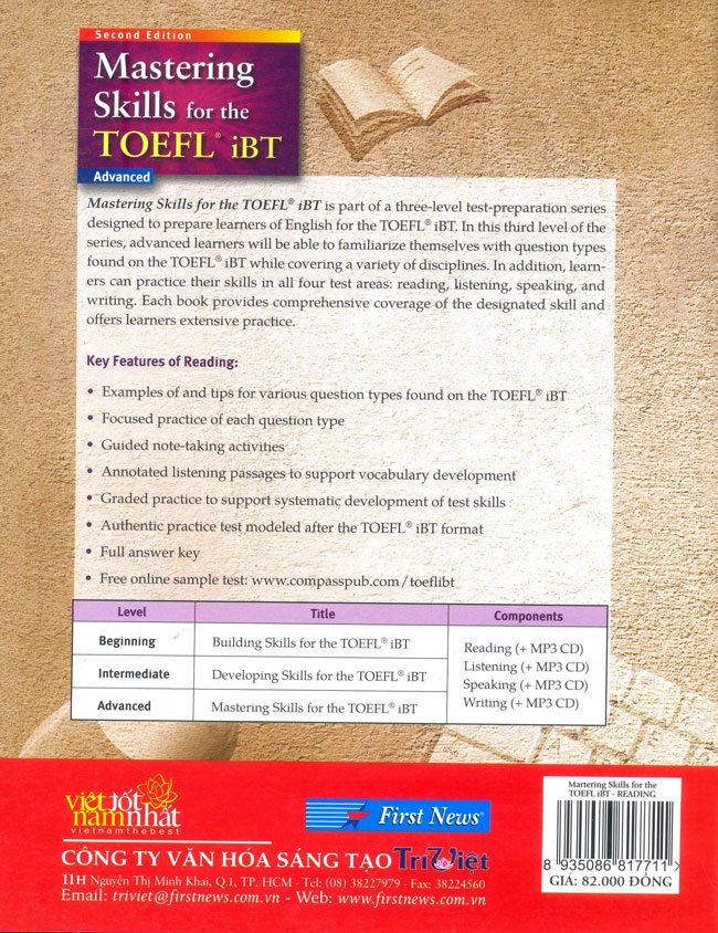 Mastering Skills For The TOEFL IBT (Kèm 10 CD) Bộ sách Developing Skills For The TOEFL iBT Intermediate gồm 3 quyển: Beginning, Intermediate, Advanced. Đây là bộ sách luyện thi TOEFL đầu tiên giúp