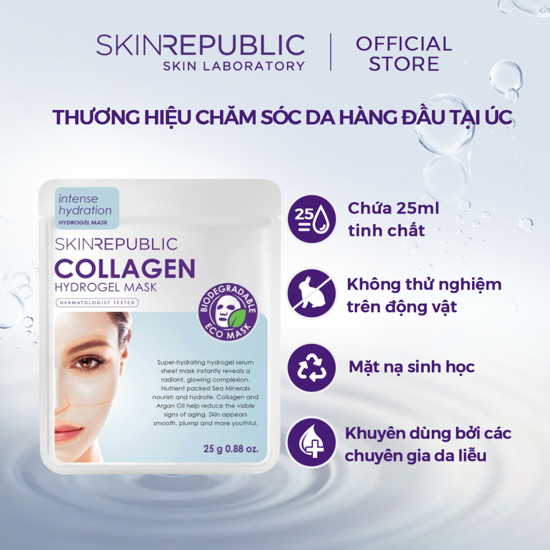 Mặt nạ dưỡng da Skin Republic Collagen Hydrogel Face Mask 25ml - Với công nghệ Hydrogel cải tiến, giúp ôm sát khuôn mặt, tạo lực và nâng cơ mặt, tăng khả năng thẩm thấu dưỡng