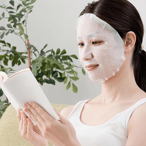 - Bước 2: Đắp mặt nạ giấy lên mặt, điều chỉnh để mặt nạ bám khít vào da