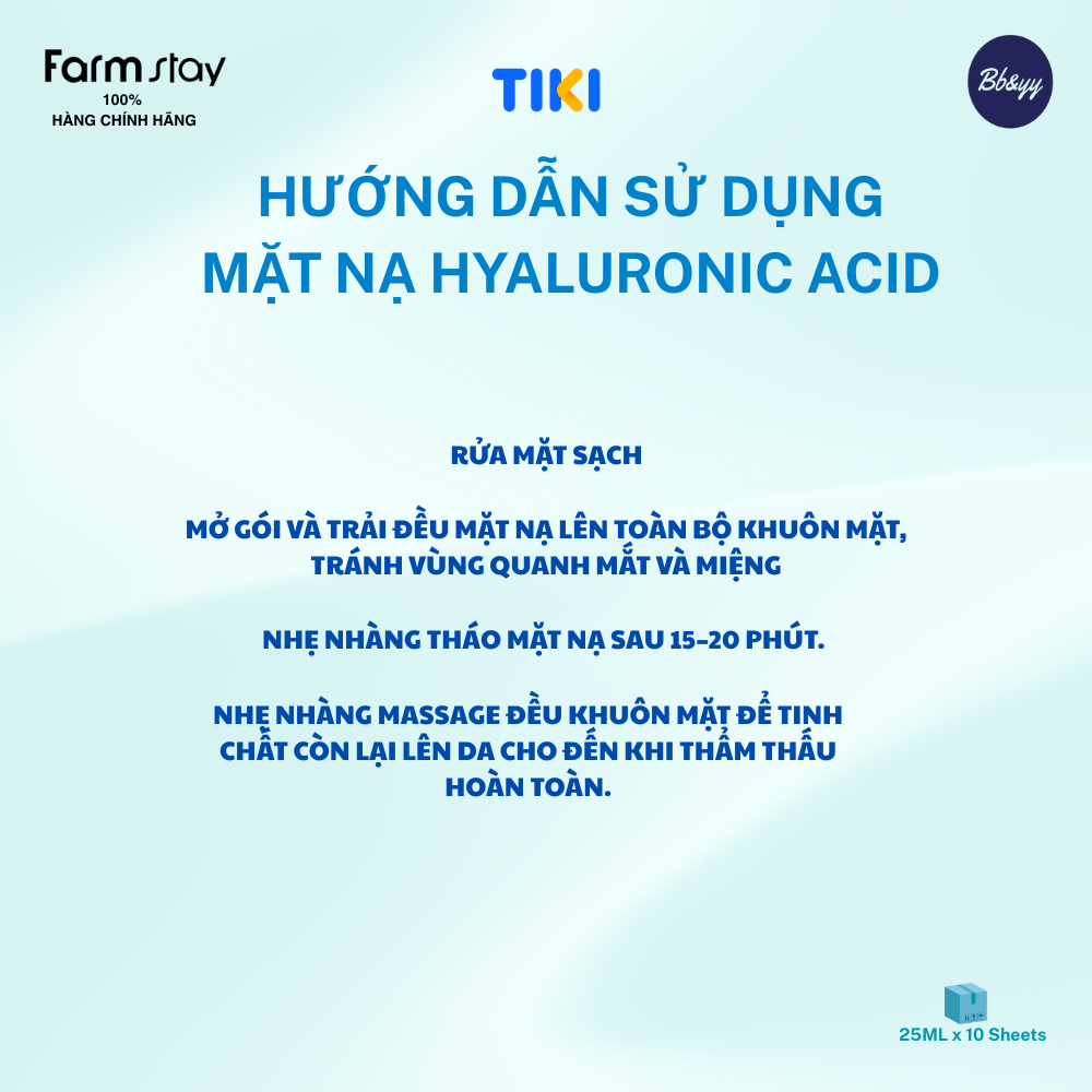 Sử dụng sản phẩm sau bước làm sạch hoặc sau bước apply toner, mở gói mặt nạ và đắp đều lên toàn bộ khuôn mặt, tránh vùng mắt và miệng.