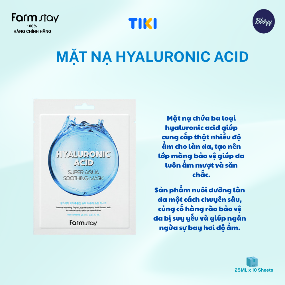 1. Dear, Klairs Mặt nạ giấy Midnight Blue Calming Sheet Mask 25ml Thành phần: Water, Butylene Glycol, Methylpropanediol, Glycereth-26, 1,2 Hexanediol, Salix Alba (Willow) Bark Extract, Glycerin, Erythritol, Arginine, Carbomer, Carrageenan, Betaine, Allantoin, Ethylhexylglycerin, Propanediol, Polyglyceryl-10 Laurate, Glyceryl Acrylate/Acrylic Acid Copolymer, PVM/MA Copolymer, Disodium EDTA, Dipotassium Glycyrrhizate, Melaleuca Alternifolia (Tea Tree) Leaf Oil, Centella Asiatica Extract - Công dụng: Giúp làm dịu da, giảm kích ứng và làm mát da, đặc biệt là những làn da bị nóng, rát do tiếp xúc với ánh nắng mặt trời; phù hợp với cả những làn da nhạy cảm. Ngăn ngừa sự tiết bã nhờn của da làm to lỗ chân lông và giảm thiểu sự hình thành mụn đầu đen nhờ than tre hoạt tính, rau má và chiết xuất cây liễu. - Loại da: da dễ bị nóng đỏ, kích ứng/ da nhờn/ da sau tổn thương. - Hướng dẫn sử dụng: Sau khi rửa mặt, có thể sử dụng sau nước hoa hồng để đạt hiệu quả tốt, đắp mặt nạ 15 - 20 phút rồi gỡ mặt nạ ra, nhẹ nhàng massage cho dưỡng chất thấm vào da. Không nên rửa lại với nước. Có thể dùng thêm tinh chất hoặc kem dưỡng sau khi đắp mặt nạ tùy ý. Sử dụng 1-2 lần/ tuần để đạt hiệu quả tốt.
