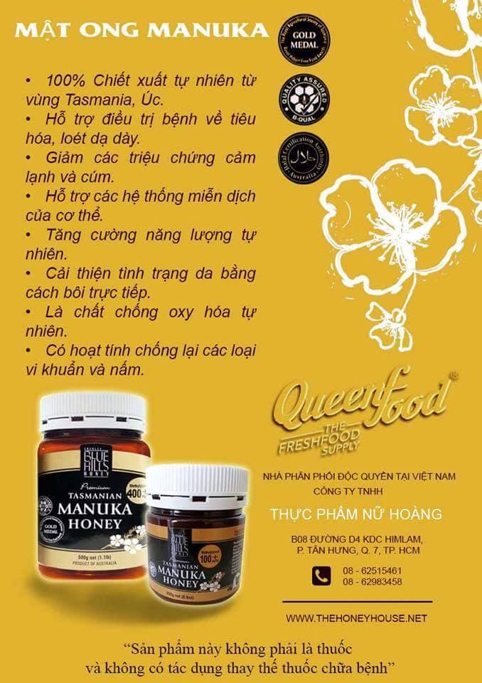 Mật ong Manuka từ lâu đã nổi tiếng bởi những tác dụng tốt đối với sức khỏe và đặc biệt được công nhận trên toàn thế giới bởi thuộc tính kháng khuẩn độc đáo. Manuka BlueBills từ vùng rừng nguyên sinh Tasmania nước Úc- nơi 1 năm chỉ có 20 người được dặt chân đến.