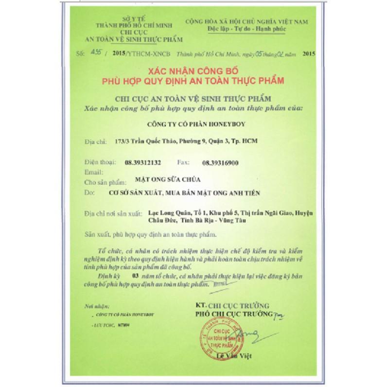 Mật ong HONEYBOY xuất thân từ một gia đình có hơn 40 năm làm nghề nuôi ong mật tại Thị Trấn Ngãi Giao, Huyện Châu Đức, Vũng Tàu. Mật ong Thô Honeyboy đã được kiểm định chất lượng bởi chi cục vệ sinh an toàn thực phẩm. Qua nhiều khâu kiểm tra, xét nghiệm bởi Intertek (Đức), sản phẩm Mật ong thô của HONEYBOY đã được thị trường khó tính như MỸ nhập khẩu.