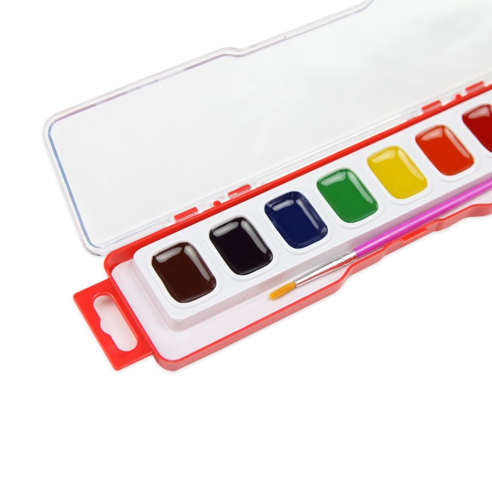 - Hộp 12 Màu Nước Dạng Nén Deli 73868 - Màu Nước Dạng Nén Mỹ Thuật có màu sắc sặc sỡ, độ bão hòa cao - Hộp màu đính kèm cọ vẽ bên trong -
