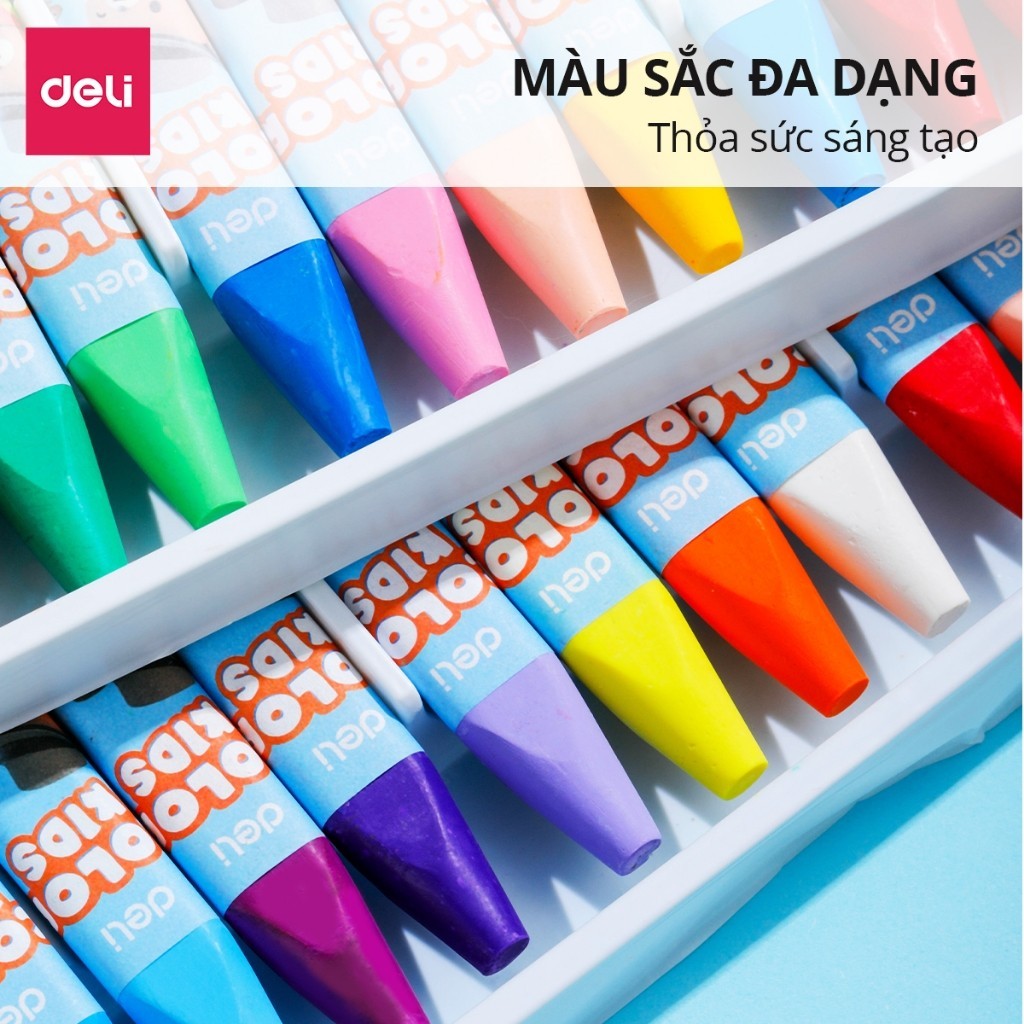 Màu sáp dầu học sinh Colorkids 12/24 màu Deli- Sáp màu dầu siêu mịn, màu sắc tươi sáng, an toàn ít mùi, tô màu mỹ thuật EC221-12/24 TÍNH NĂNG SẢN PHẨM: ️Chất liệu an toàn,