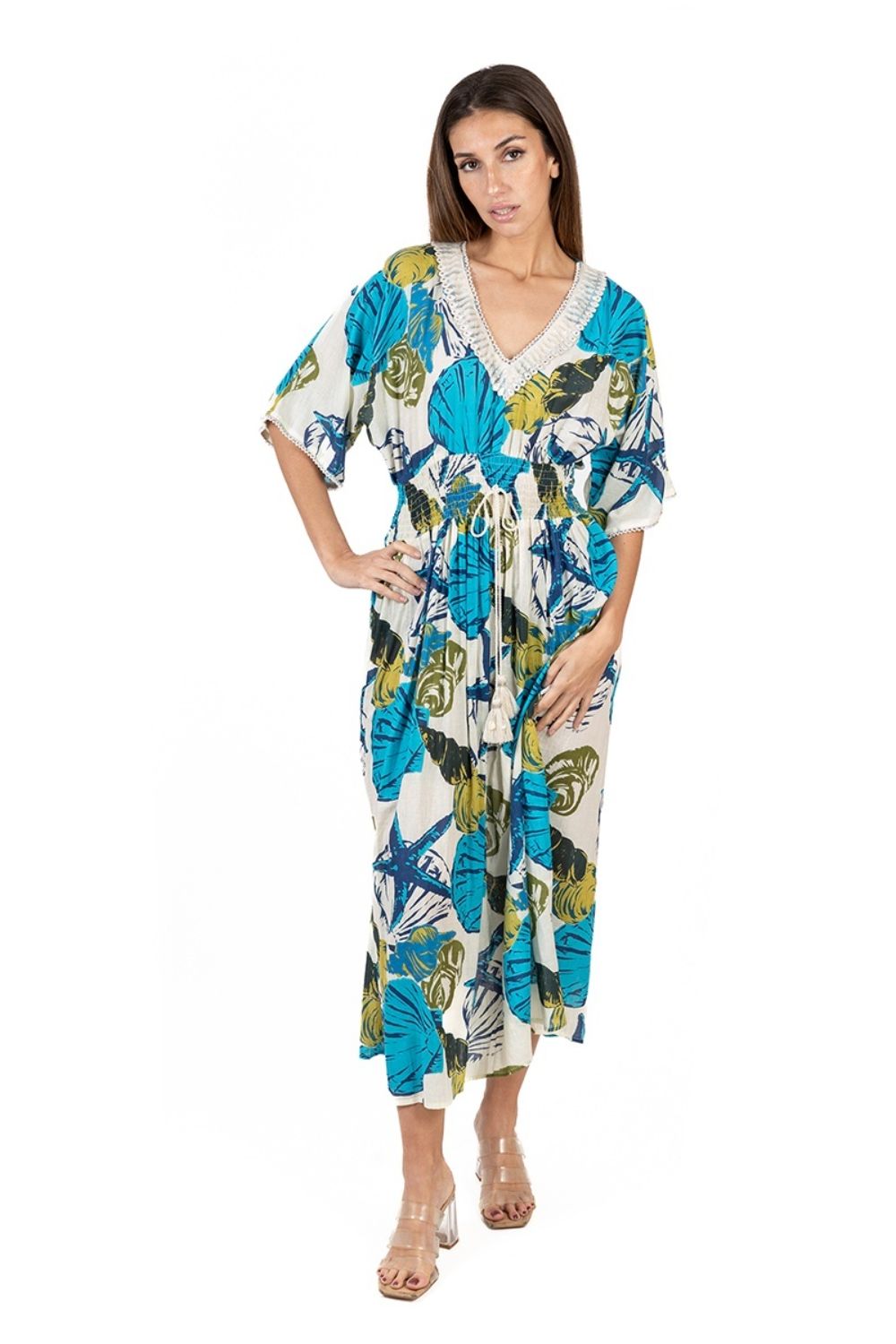 Maxi Cotton Phối Ren Isla Bonita, chất liệu cotton mềm mại, điểm nhấn ở phần ren trắng nổi bật trước ngực. Màu sắc rực rỡ. Thun co giãn ở eo. Phom cánh dơi như freestyle.