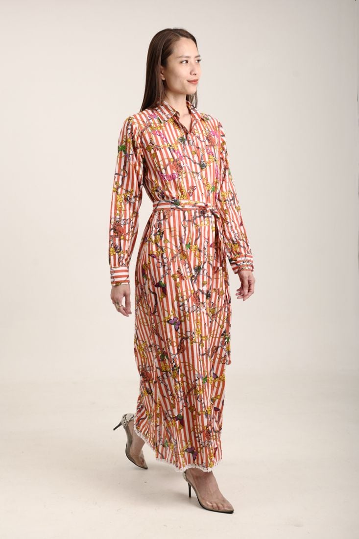 Maxi Sơ Mi Dài Tay Isla Bonita, chất lụa mềm mại, cao cấp. Có dây cột eo. Phom suông. Dài đầm 126cm (45x126) Phù hợp đi biển, dạo phố, công sở, hoặc dự tiệc. Hướng