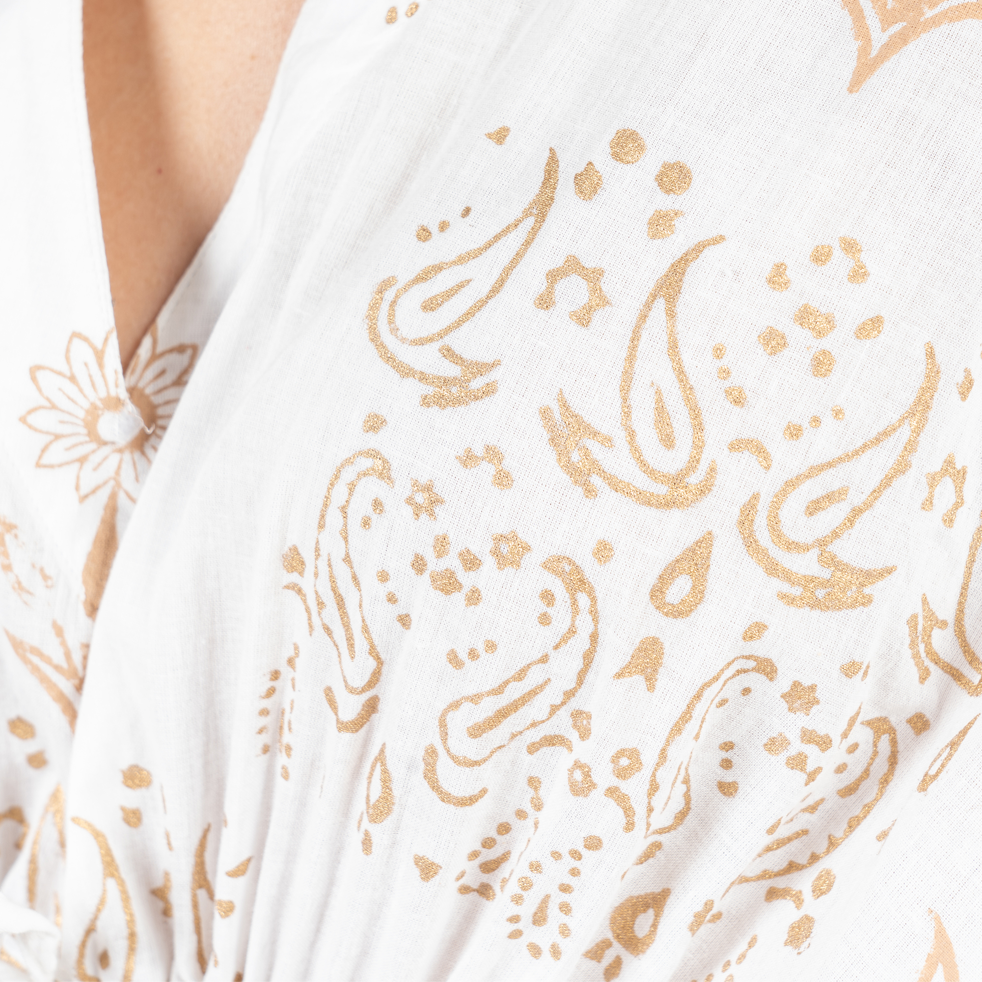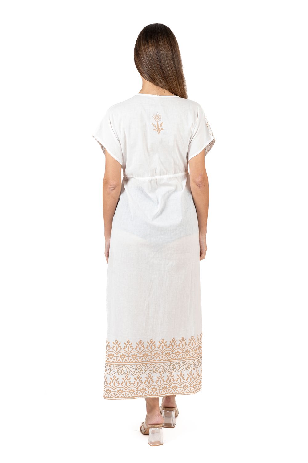 Maxi Cánh Dơi Trắng Cotton Isla Bonita, chất liệu cotton mềm mại, nền vải vẽ ánh kim cao cấp, mặc phối với quần short hoặc đồ bơi. Dài đầm 130cm (60x130) Phù hợp đi biển,