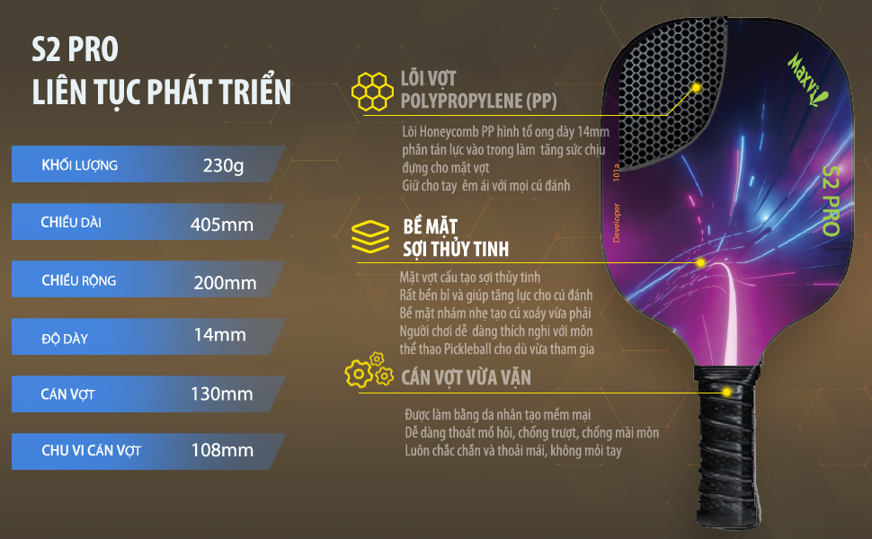 Vợt Pickleball S2 PRO – Liên tục phát triển