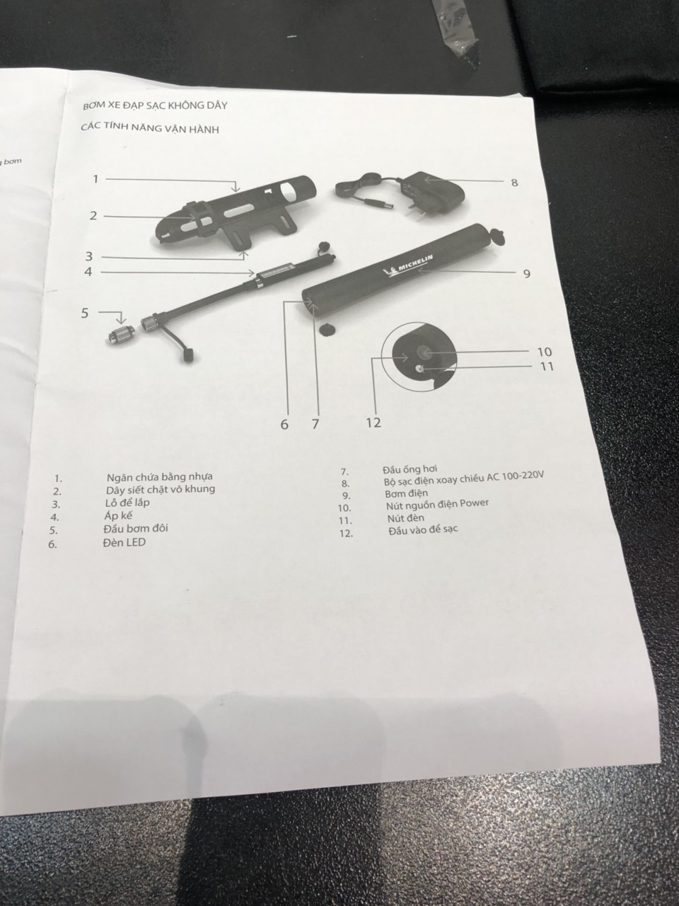 THÔNG TIN KỸ THUẬT - Tên sản phẩm: Máy bơm lốp xe đạp, xe máy, mô tô siêu tốc MICHELIN 12320 dùng pin - Model: 12320 - Công dụng: bơm hơi các loại xe đạp, xe