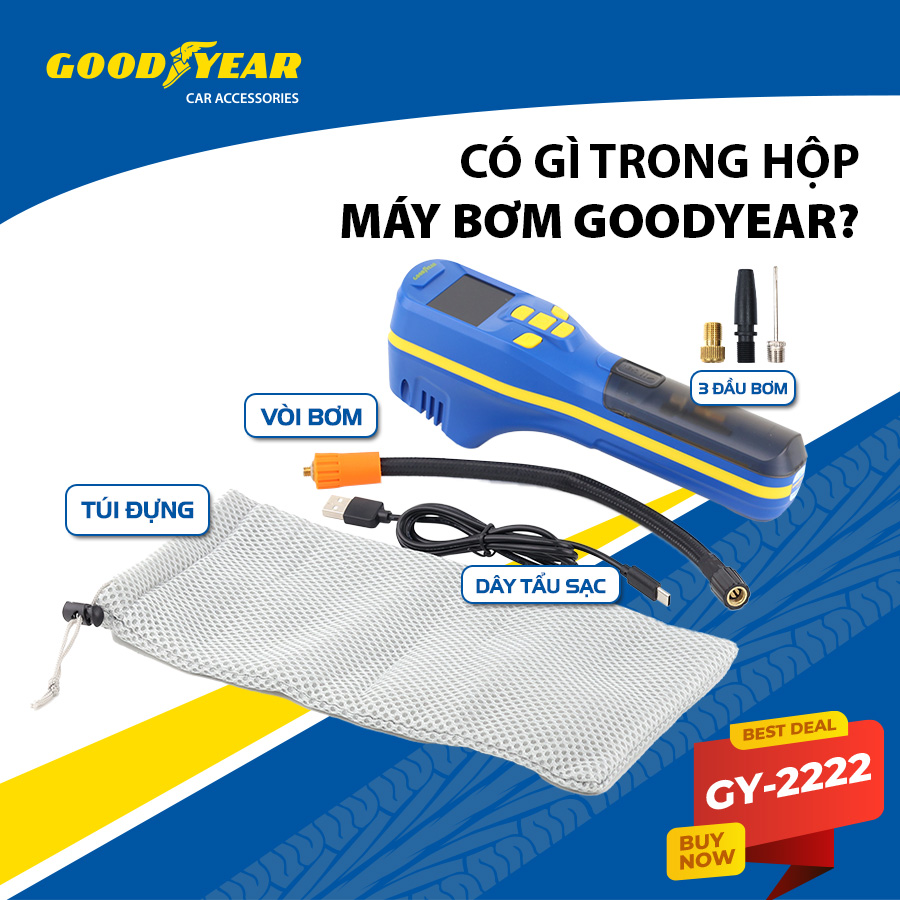 SHOP CIND XIN CHÀO QUÝ KHÁCH, CẢM ƠN QUÝ KHÁCH ĐÃ QUAN TÂM SẢN PHẨM CỦA SHOP CIND MÔ TẢ SẢN PHẨM Máy Bơm Lốp Xe GOODYEAR GY-2222 Cầm Tay Nhỏ Gọn Không Dây Tích