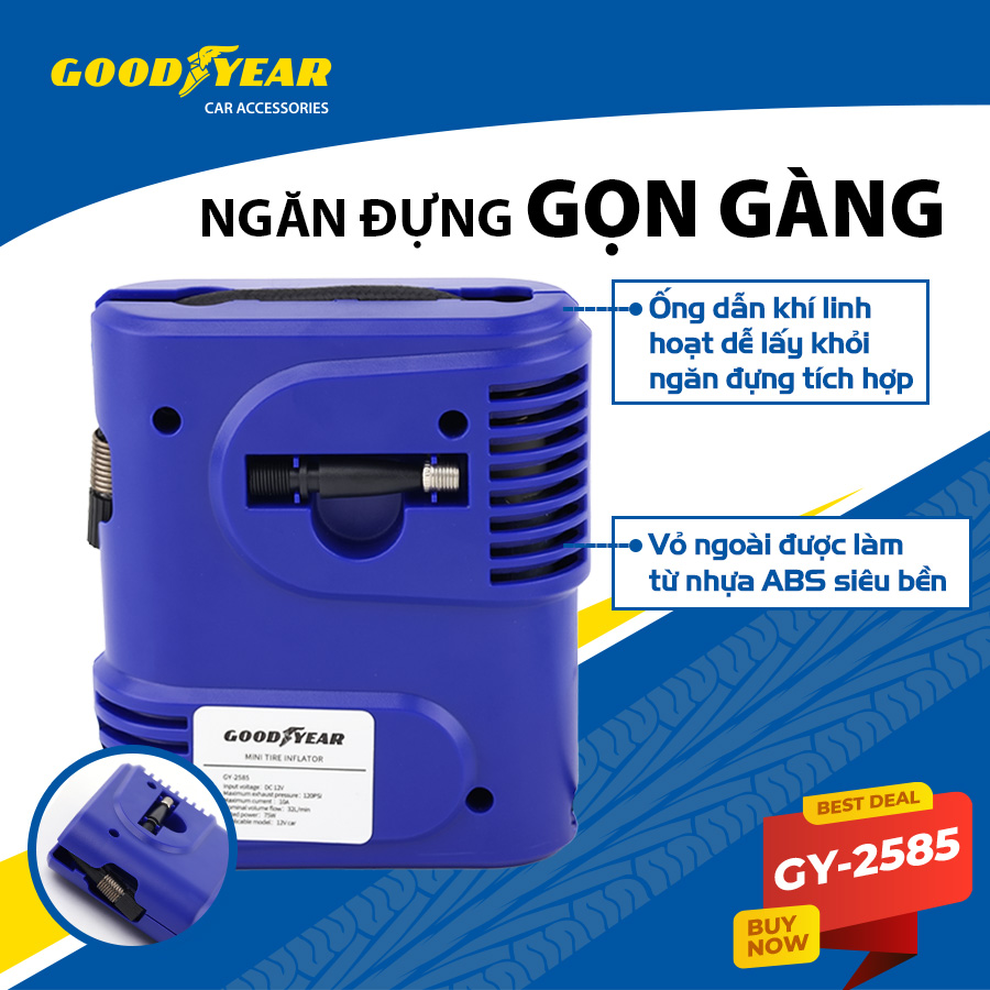 SHOP CIND XIN CHÀO QUÝ KHÁCH, CẢM ƠN QUÝ KHÁCH ĐÃ QUAN TÂM SẢN PHẨM CỦA SHOP CIND MÔ TẢ SẢN PHẨM Máy Bơm Lốp Xe GOODYEAR GY-2585 Mini Tiện Dụng Đặc điểm