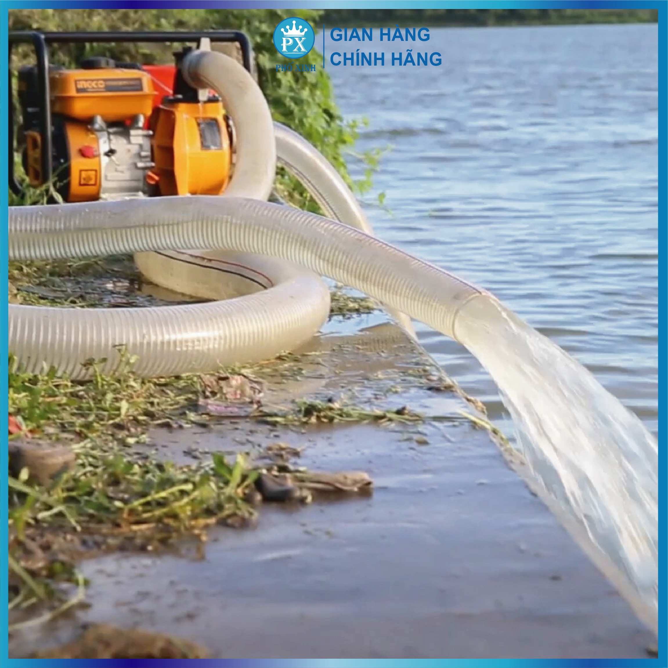 Máy bơm nước dùng xăng INGCO GWP202 động cơ xăng 7.0HP, dung tích xi lanh 208cc, bình nhiên liệu 3,6L, khởi động giật nổ Giới thiệu Máy bơm nước dùng xăng INGCO GWP202 Máy bơm nước dùng xăng INGCO GWP202 là máy qua hoạt động có động cơ giúp bơm nước cho bạn, máy chỉ hoạt động khi sử dụng nguyên liệu xăng, thường áp dụng trong việc tưới tiêu cho cây trồng hay hút nước chống ngập úng ruộng đồng hay ao hồ. Thông số kỹ thuật