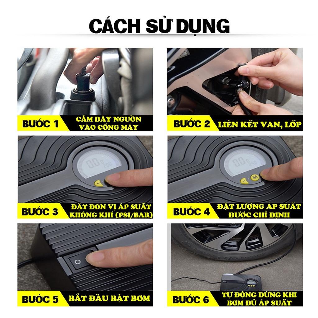 Máy bơm xe hơi ô tô - Đồng hồ điện tử thông minh tự động ngắt - Thiết lập trước áp suất - Tích hợp đèn LED khẩn cấp
