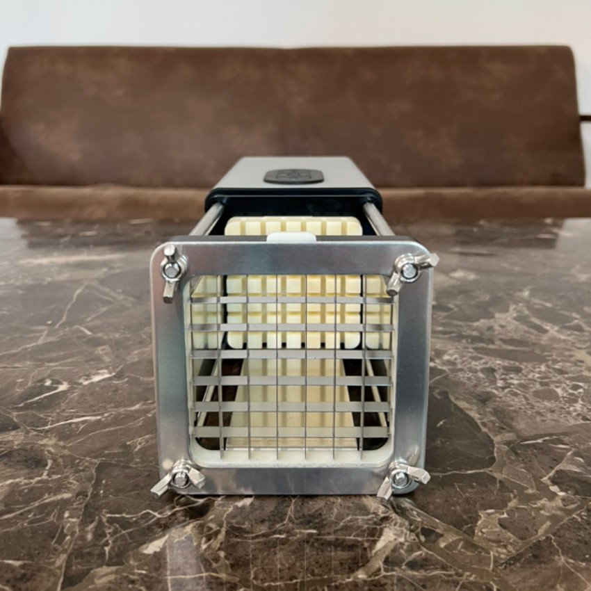 - Máy cắt khoai tây chiên tuy là một thiết bị tự động nhưng máy có thiết kế nhỏ gọn, kích thước 115 x 115 x 372mm, có thể di chuyển hoặc đặt cố định ở mọi vị trí mà không tốn diện tích - Thân máy được làm bằng vật liệu inox sáng bóng, khả năng chống han gỉ cao giúp hạn chế những tác động của ngoại cảnh và môi trường bếp nấu. Đặc biệt chất liệu inox cao cấp, không làm ảnh hưởng đến màu sắc và mùi vị của nguyên liệu, đảm bảo vệ sinh an toàn thực phẩm Vệ sinh máy dễ dàng, đảm bảo an toàn vệ sinh thực phẩm