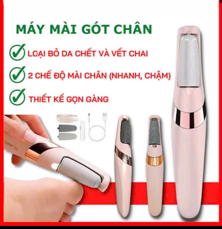 THÔNG TIN SẢN PHẨM Chất liệu sản phẩm: ABS + đầu đá mài Chế độ mài chân: 2 loại (nhanh, chậm) - Điện áp: 3.7V - Công suất: 2W - Dung lượng pin: 500mAh - Màu sắc: Hồng - Trọng lượng kim loại trần: 106g Kích thước kim loại trần: 19,2 * 3,6cm Trọng lượng của một