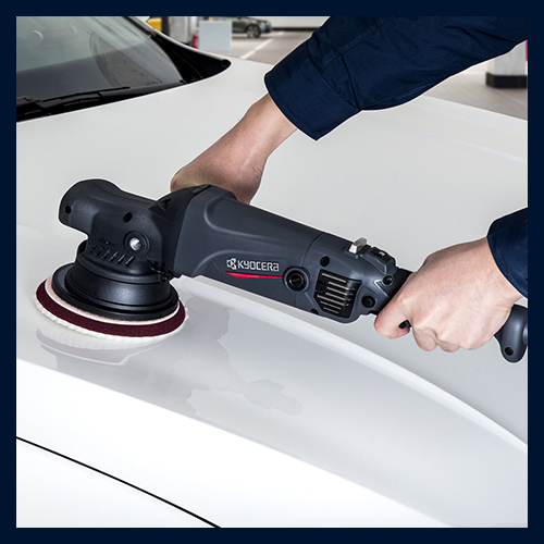 Máy đánh bóng lệch tâm Kyocera APEG151G giúp loại bỏ khuyết điểm trên bề mặt nhanh chóng và dễ dàng.
