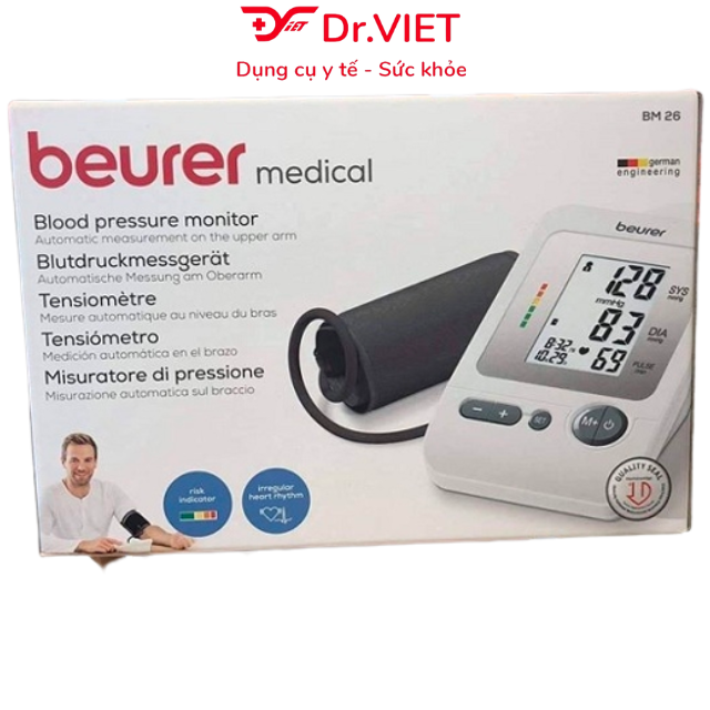 Máy đo huyết áp bắp tay Beurer BM26 giúp đo huyết áp ổn định và chính xác, thích hợp cho những người bị máu nhiễm mỡ và xơ vữa động mạch, người bị tiểu đường.