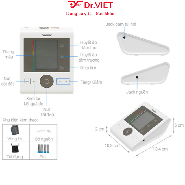 Mô tả: Vị trí đo: bắp tay, độ chính xác cao Tính năng: phân loại kết quả theo thang WHO, cảnh báo nhịp tim bất thường, báo cáo kết quả trung bình 3 lần đo,