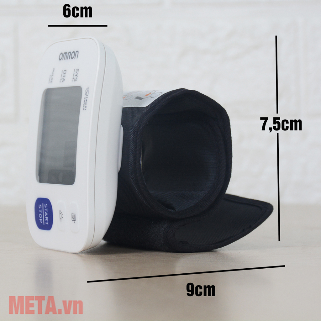 - Nhịp tim: ±5%. Máy sử dụng 1 pin 3A 1,5V Kích thước của máy đo huyết áp Bộ sản phẩm máy đo huyết áp Bộ sản phẩm máy đo huyết áp Omron HEM - 6181