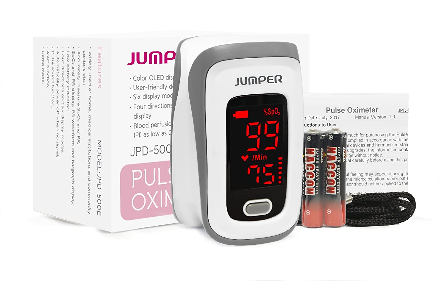 -------MÁY ĐO NỒNG ĐỘ OXY JUMPER JPD-500E ----- CAM KẾT CHÍNH HÃNG 100% Được nhập khẩu chính ngạch từ Hãng. + Chức năng: Đo nồng độ oxy trong máu, đo