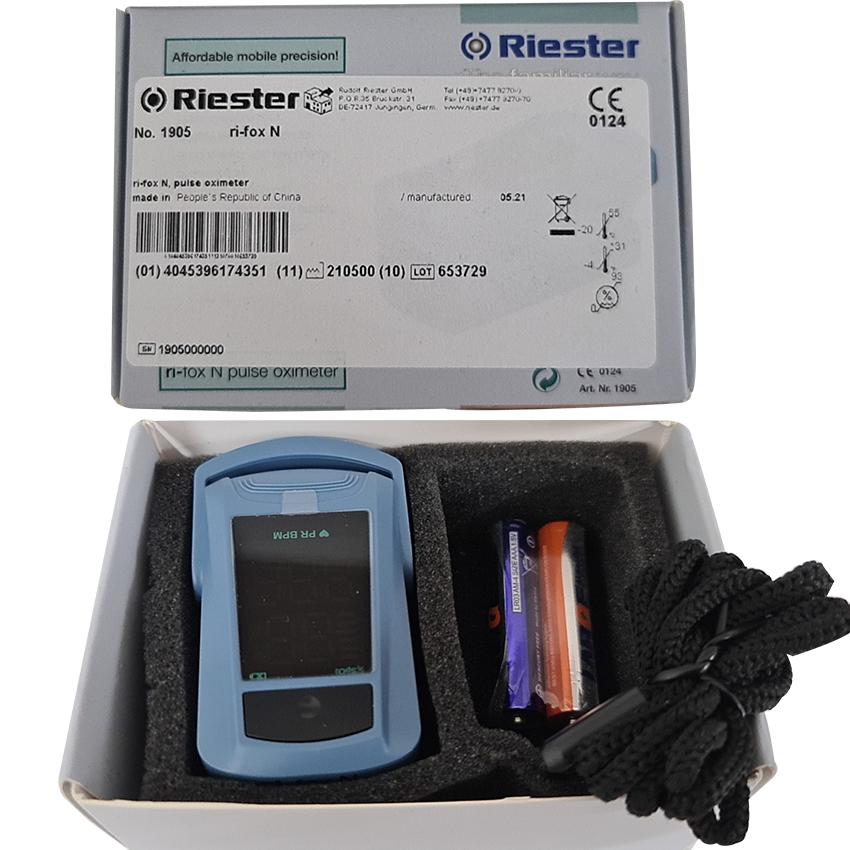 Máy đo nồng độ oxy trong máu và nhịp tim (Sp02) RI-FOX N ứng dụng công nghệ đo nồng độ Oxy bảo hoà trong máu riêng biệt của Hãng Riester - Đức cho số liệu