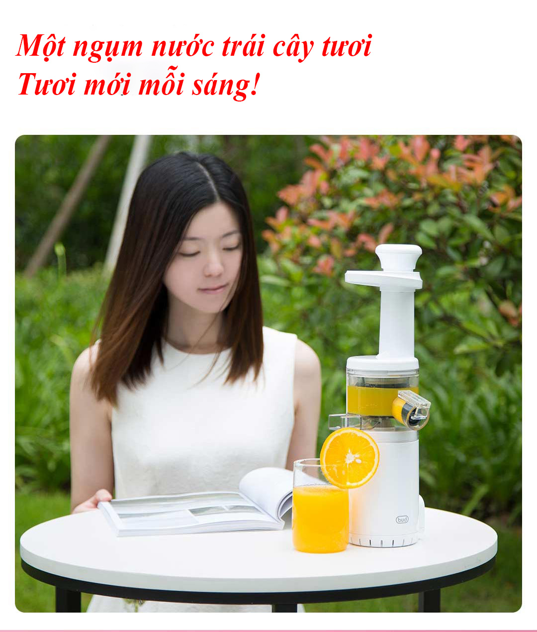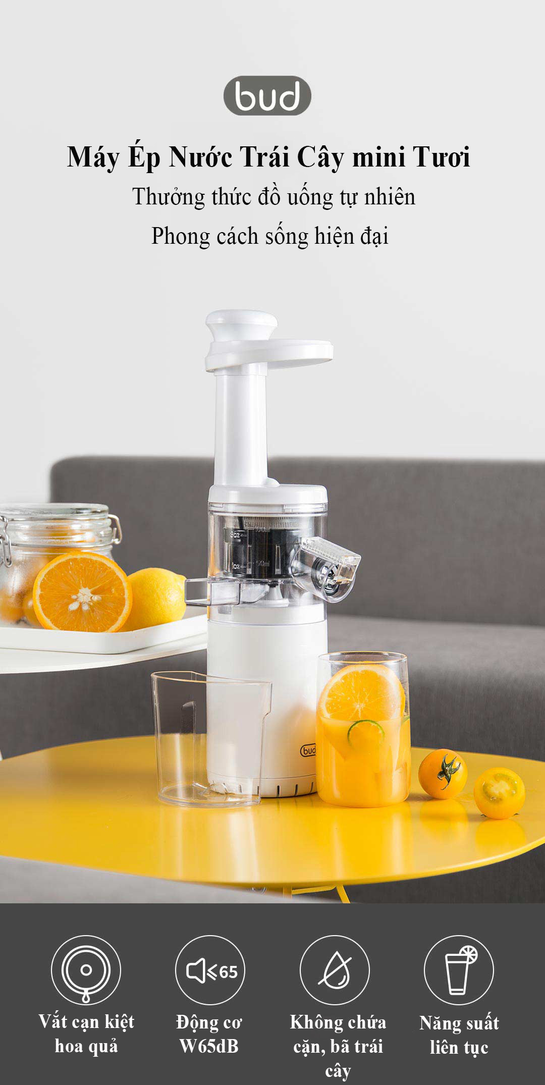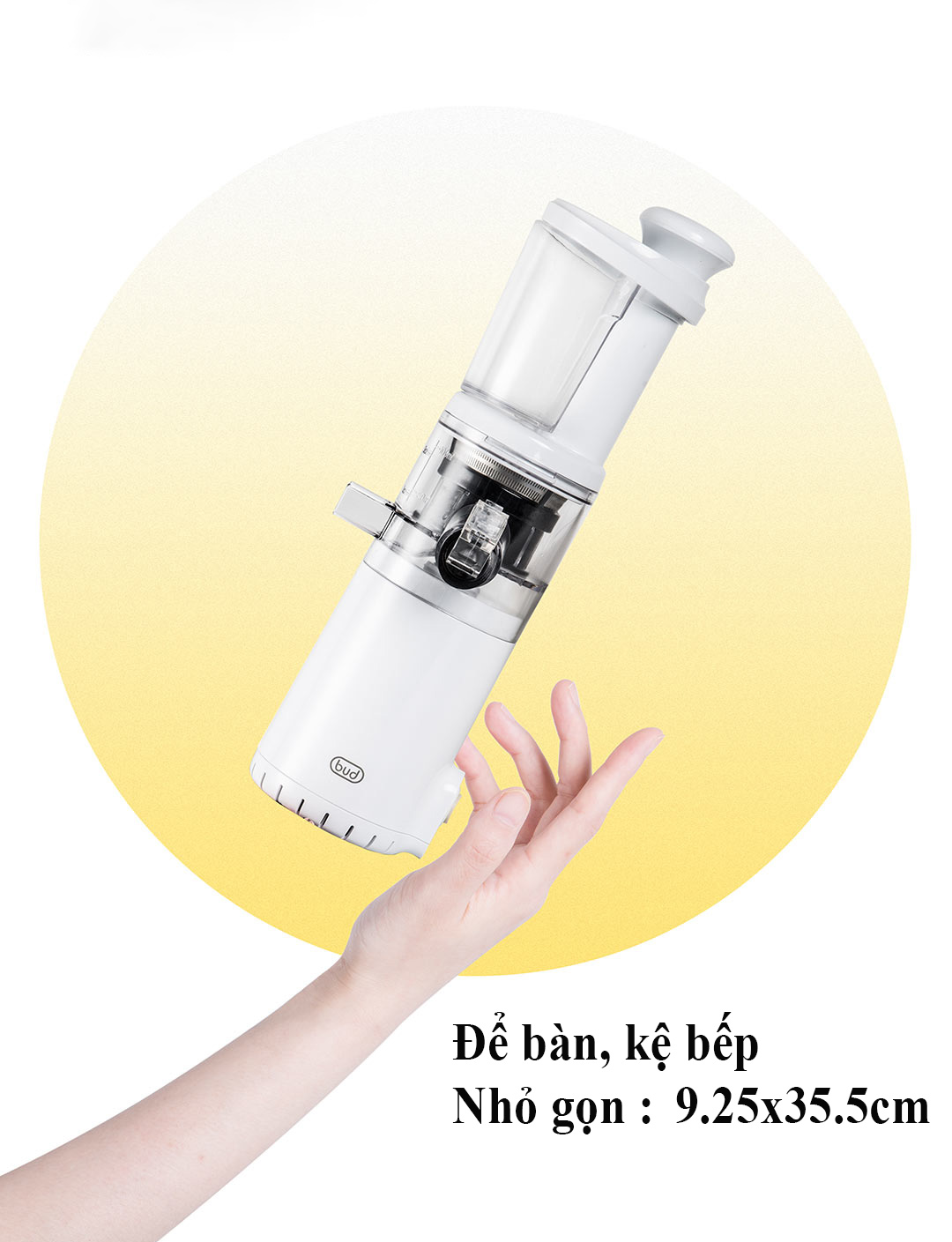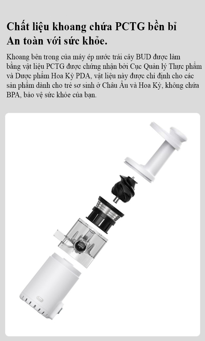 Máy Ép Chậm trái cây BUD mini BJ08 Còn gì hấp dẫn hơn việc tự tay làm những ly nước ép trái cây tươi ngon ngay tại nhà với Máy ép trái cây BUD mini