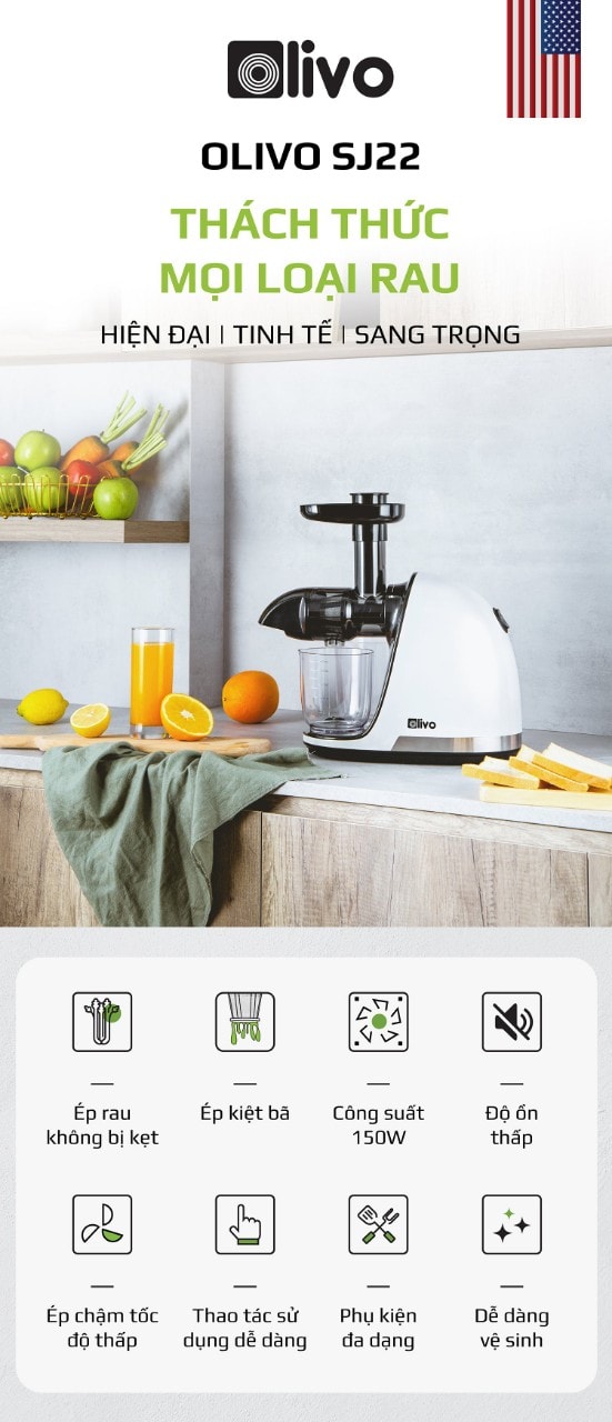Trải nghiệm ngay Máy ép chậm OLIVO SJ22 Công nghệ ép kiệt tới 98% mọi loại rau củ!