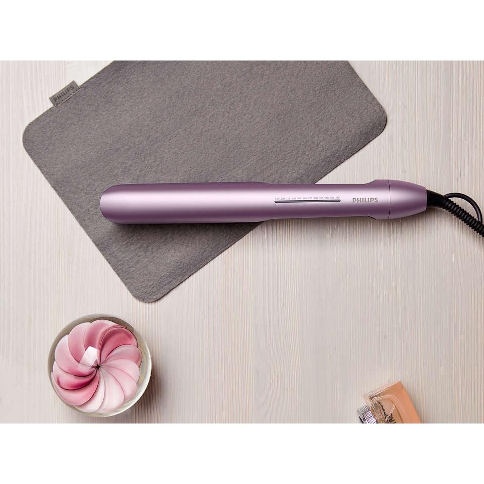 Các tấm kẹp trơn giúp máy ép tóc trượt dễ dàng qua tóc, nhờ vậy bạn có thể tiết kiệm thời gian tạo kiểu và có được một mái tóc thẳng mượt lâu hơn.