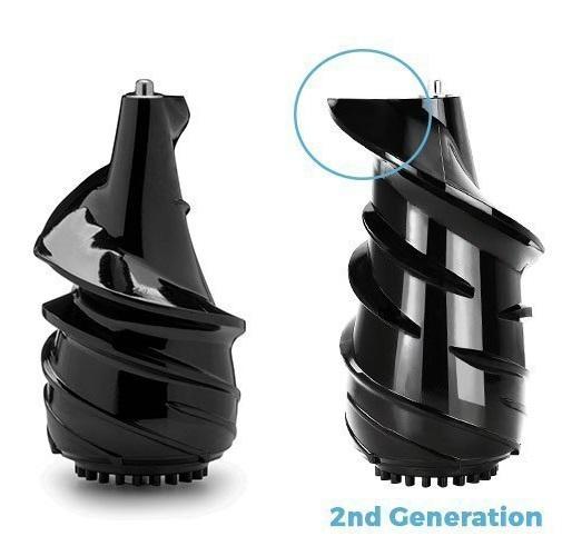 Trục vít được nâng cấp để dễ dàng cuộn sản phẩm từ ống dẫn xuống và bắt đầu quá trình ép. Trục lớn hoạt động tốt cho phép ép các loại rau xanh như cần tây, cải xoă
