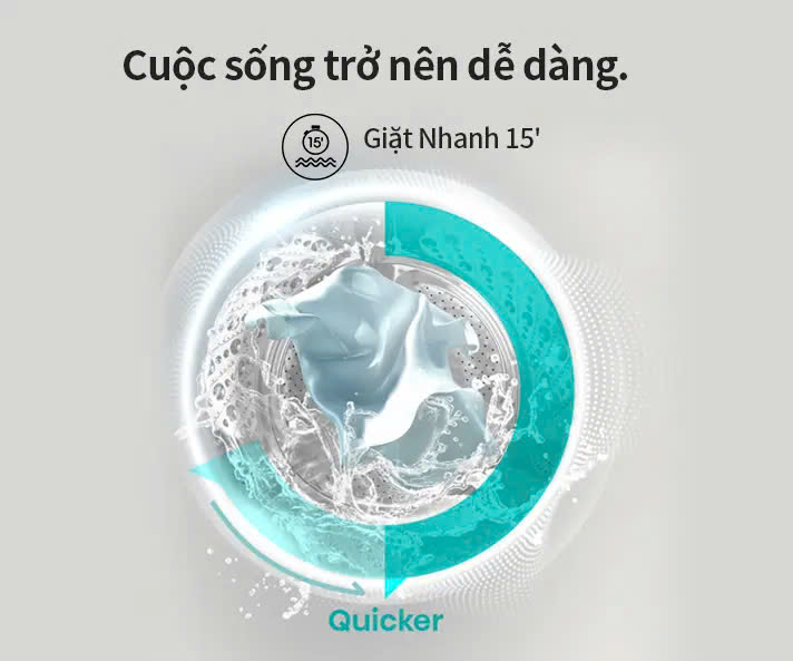 - Giặt Nhanh 15': Chương trình Giặt nhanh rút ngắn đáng kể thời gian giặt và lý tưởng cho đồ giặt ít bẩn. Với chế độ này, bạn có thể giặt quần áo chỉ với 1 kg trong vòng 15 phút, giúp bạn thoải mái tận dụng thời gian cho các hoạt động khác.