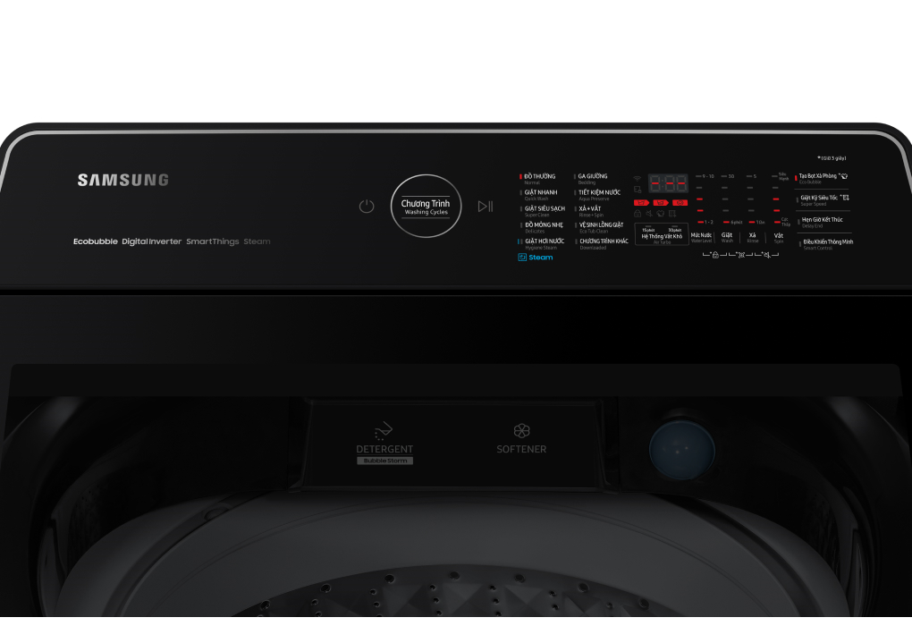 - Chế độ giặt kỹ Intensive Wash có tác dụng hòa tan bột giặt, nhờ đó xà phòng có thể thẩm thấu đến từng sợi vải, loại bỏ vết bẩn cứng đầu bám trên áo quần. - Công nghệ giặt hơi nước Hygiene Steam ở nhiệt độ cao tạo ra hơi nước bốc lên thổi vào toàn bộ bề mặt và sâu trong kẽ vải giúp loại bỏ cặn bẩn bám sâu, đồng thời diệt khuẩn hiệu quả đến 99.9%, đảm bảo an toàn sức khỏe cho cả gia đình, đặc biệt những người có làn da nhạy cảm hay bị mẩn ngứa. Công nghệ giặt hơi nước Hygiene Steam trên máy giặt Samsung đã được Intertek công nhận về khả năng diệt 99.9% vi khuẩn, ngừa dị ứng. Intertek là nhà cung cấp dịch vụ kiểm định hàng đầu với hơn 40.000 nhân viên và 1.000 văn phòng tại hơn 100 quốc gia. Intertek đã được chứng nhận, công nhận và hợp tác rộng rãi trên toàn cầu. Bất cứ sản phẩm nào, khi được Intertek kiểm định thì đều có thể đảm bảo sản phẩm đó đáp ứng được các tiêu chuẩn về chất lượng, y tế, môi trường, an toàn và trách nhiệm xã hội áp dụng tại bất kỳ thị trường nào trên thế giới. Động cơ – công nghệ tiết kiệm điện - này sử dụng động cơ có khả năng điều chỉnh vòng quay giúp tiết kiệm điện năng, nhờ sử dụng động cơ truyền động trực tiếp giúp giảm thiểu tiếng ồn, máy hoạt động êm ái và bền bỉ hơn.