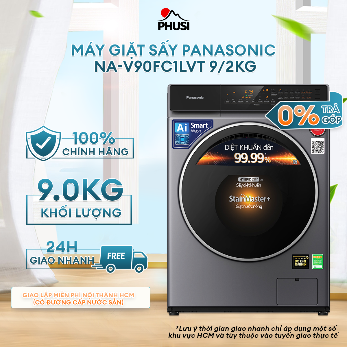 Khu vực ngoại thành HCM có giao hàng tính phí, vui lòng liên hệ trước. * Lắp đặt miễn phí lúc giao hàng ở nhà trệt / có thang máy, vật tư phát sinh tính