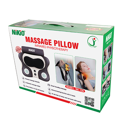 Gối massage lưng cổ hồng ngoại Nikio NK-136AC được thiết kế dựa trên công nghệ nổi tiếng Nhật Bản. Kích thước nhỏ gọn tiện lợi cho việc sử dụng thoải mái ở nhà, văn phòng… Sản phẩm đa tính năng, đa di năng là lựa chọn tuyệt vời cho bạn & người thân yêu chăm sóc sức khoẻ mỗi ngày.