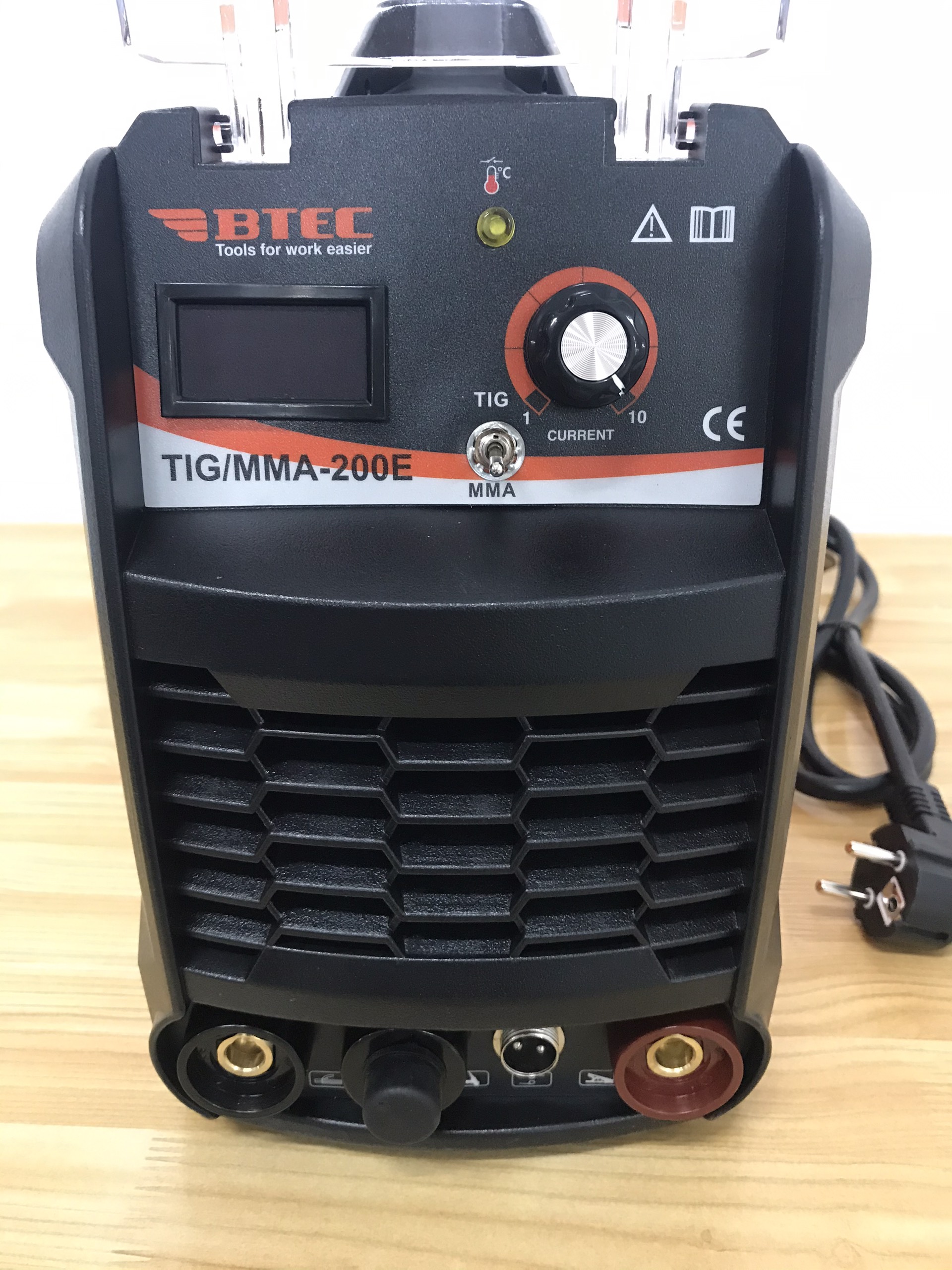 -Máy hàn BTEC TIG/MMA 200E là sự kết hợp hoàn hảo giữa máy hàn TIG và máy hàn que. Thiết kế này giúp tiết kiệm chi phí, tiết kiệm diện tích đặt máy, làm được nhiều công việc hơn.