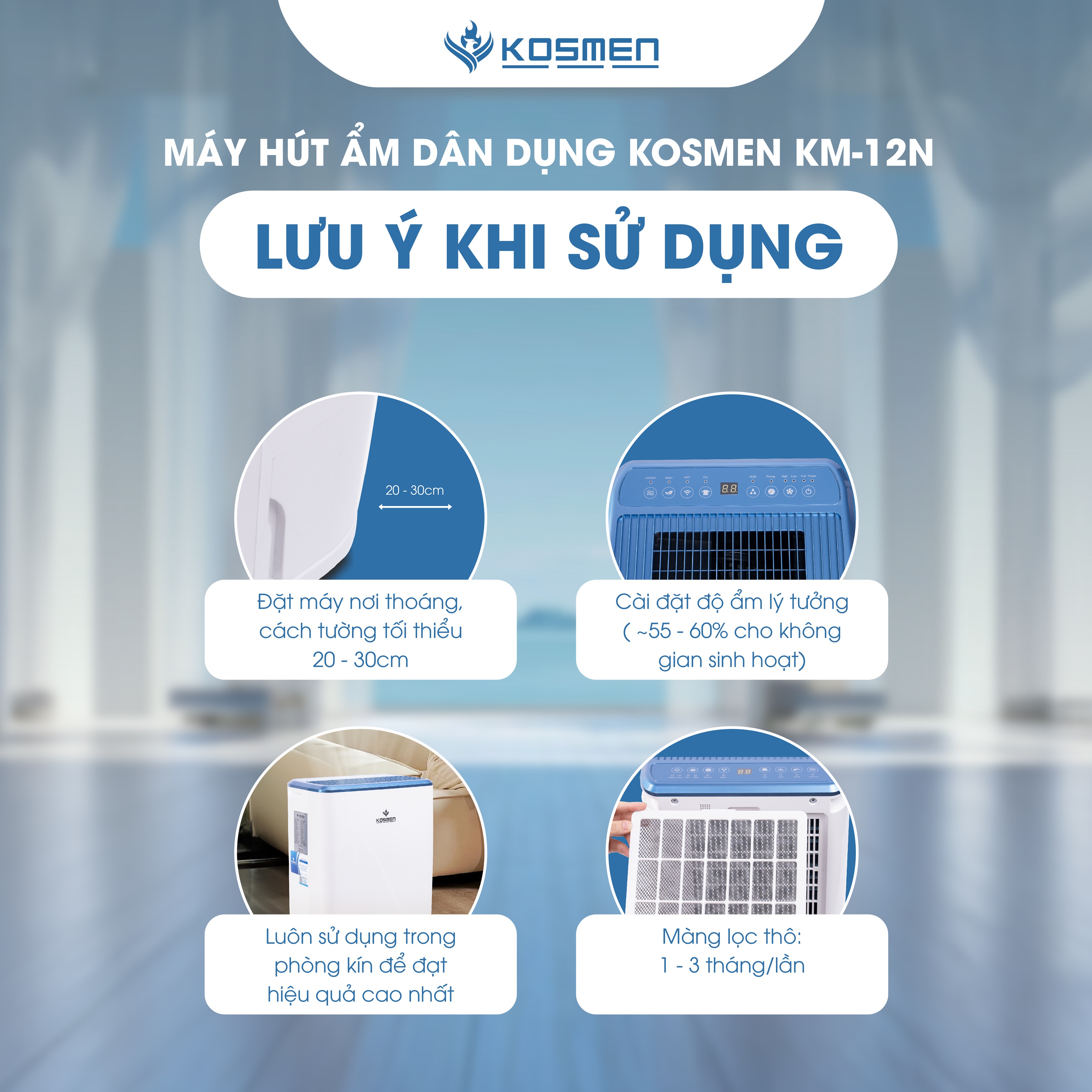 Máy hút ẩm lọc không khí Kosmen KM-12N là dòng sản phẩm nổi bật được nhiều khách hàng ưa chuộng bởi tính hữu dụng và độ bền bỉ, ứng dụng tốt trong cả không gian