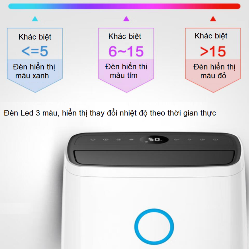 - Chức năng nhắc nhở thông minh: Khi bình chứa đầy nước sẽ nhắc nhở, bạn không cần lo lắng về việc tràn nước và nhắc nhở bạn đổ nước kịp thời để tiếp tục hút ẩm. Chức năng hẹn giờ: 1 đến 9 giờ để lựa chọn. Loại bỏ ẩm ướt trong 22 phút