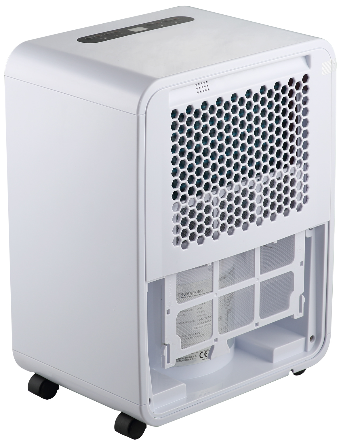 Công suất hút ẩm lên tới 20 lít mỗi ngày (ở 30° C và 80 %) Hiển thị độ ẩm kỹ thuật số, có thể điều chỉnh đến độ ẩm từ 30–80 % hoặc hoạt