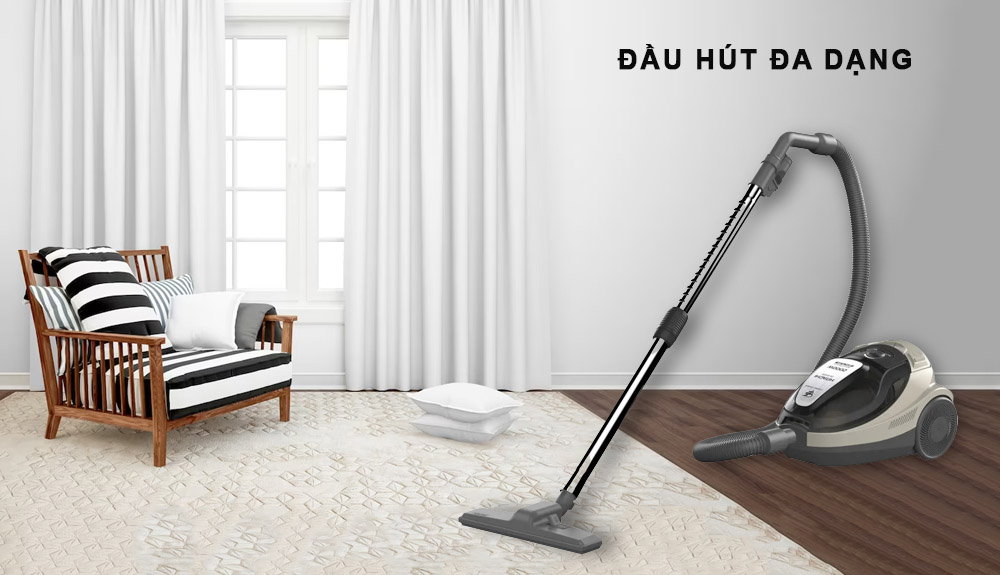 - Đầu hút sàn xoay linh hoạt, thêm đầu hút khe tiện lợi, giúp làm sạch nhanh gọn, nhẹ nhàng tới mọi ngóc ngách trong ngôi nhà bạn