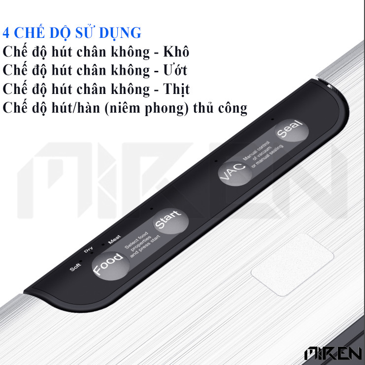 - Trang bị chế dộ hàn miệng (niêm phong) túi độc lập, cho đồ vật không cần hút chân không