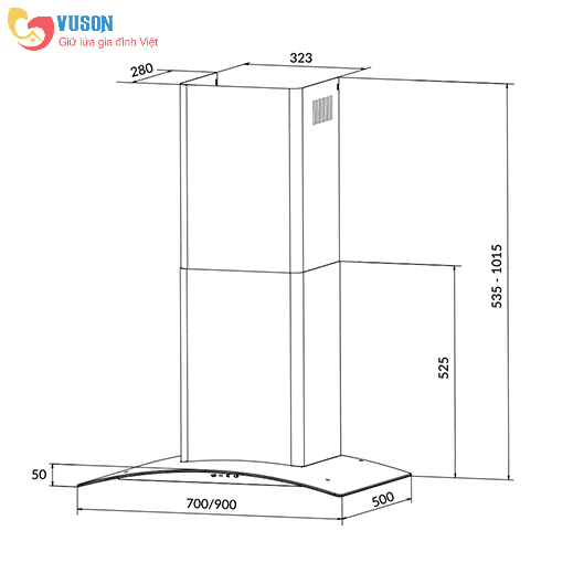Tính năng cơ bản Máy hút khói gắn áp tường Chất liệu: Inox, kính đen Điều khiển cảm ứng, 5 tốc độ Thông số kỹ thuật: Công suất hút 850 m3/h Độ ồn: <63dB Công