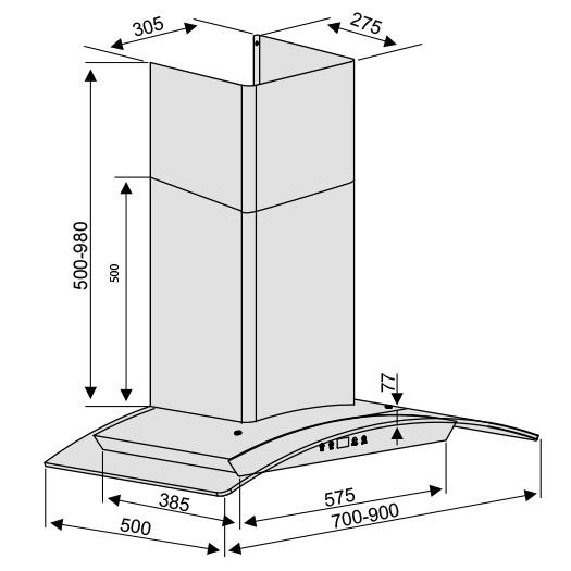 Kiểu máy toa kính Điều khiển: Phím bấm Khử mùi bằng than hoạt tính Lưới lọc Aluminum 5 lớp Chất liệu: Inox - Kính đen Công suất động cơ: 170W Kích thước: 900/700mm Ống thoát: