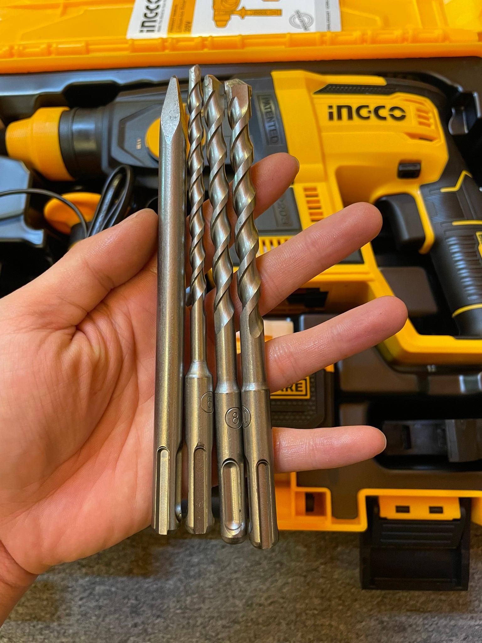 -Kèm 3 mũi khoan and 1 mũi đục.