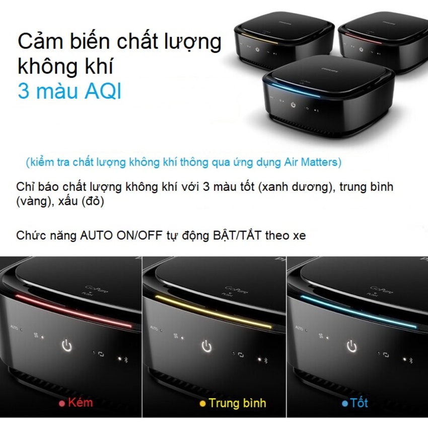 Máy lọc không khí trên xe ô tôm, xe hơi cao cấp Philips GP9101 cảm biến thông minh 6 màu AQI - Hàng nhập khẩu Ưu điểm - Thiết kế đẹp, nhỏ gọn, sang trọng.