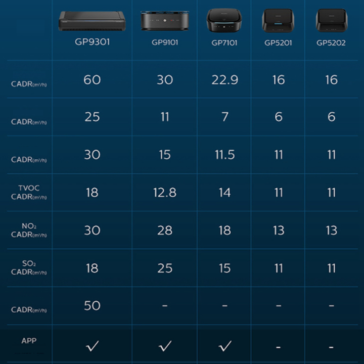- Với Tỷ lệ lọc không khí sạch (CADR) là 60m3 / giờ cho PM2.5, máy sẽ lọc sạch 50% lượng khí thải của một chiếc sedan hoặc SUV tiêu chuẩn trong 2 phút. Bộ lọc mạnh mẽ này cũng loại bỏ khói thuốc lá, bụi và các hạt bụi siêu mịn PM1 xuống 0,01µm