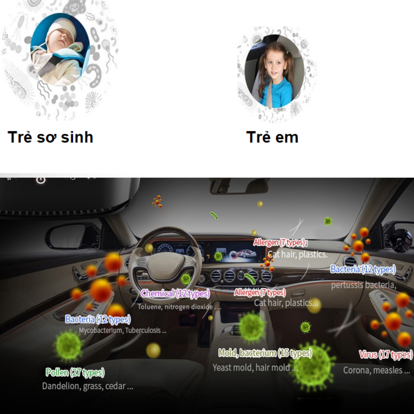 - Khử các mùi hôi khó chịu và diệt vi khuẩn trong xe bạn . - Khử mùi ở các ngóc ngách khó tiếp xúc nhất trong xe dựa vào nguyên lý hoạt động của điều