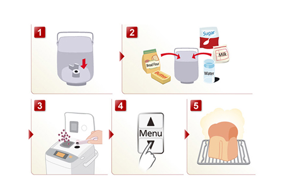 5 bước thao tác và dễ sử dụng Máy làm bánh mì Panasonic PALN-SD-P104WRA với chức năng làm bánh mì hiện đại, đơn giản mang đến sự tiện nghi cho mỗi gia đình. Thay vì phải