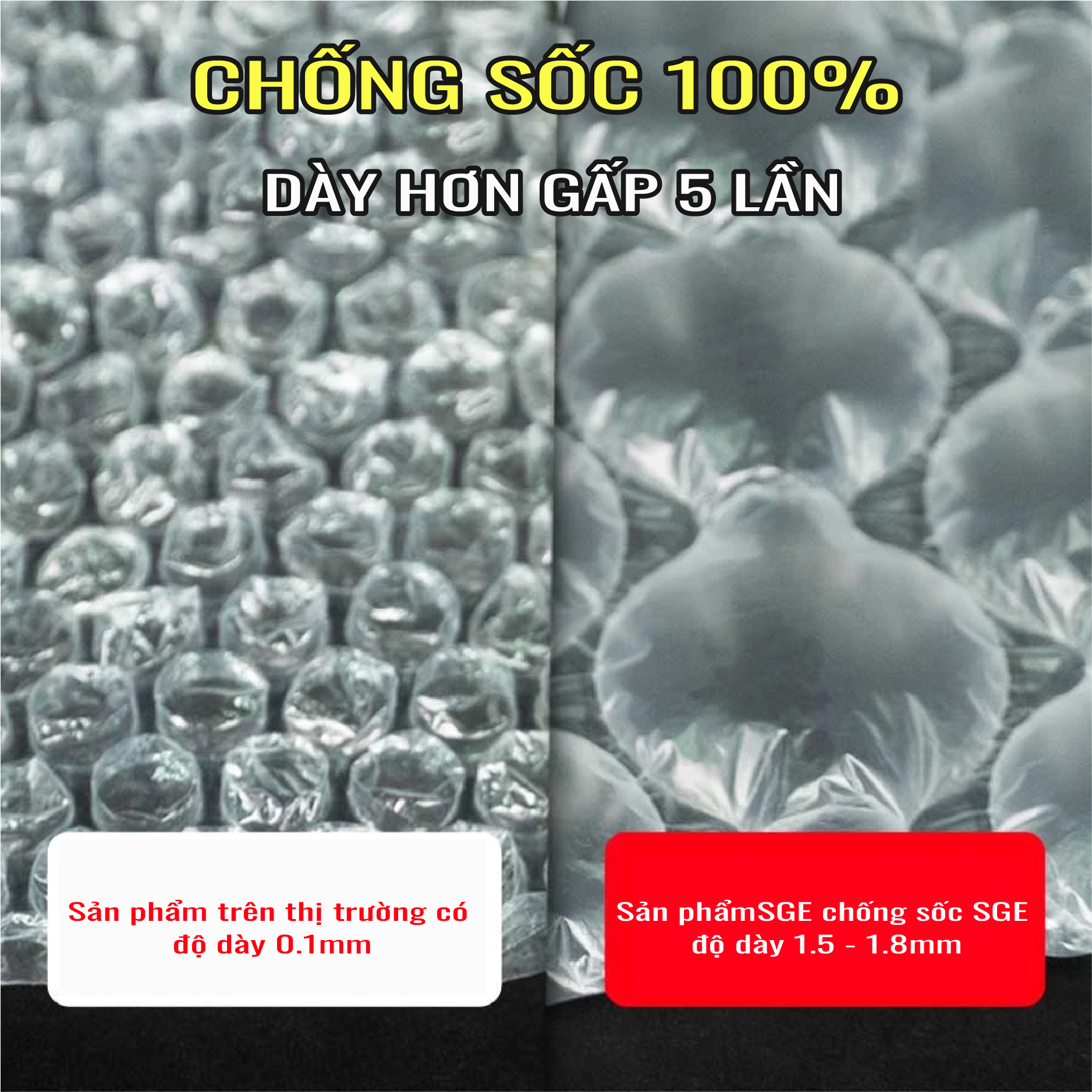Máy làm bóng khí chống sốc công nghiệp SGE có thể tạo ra túi bóng khí chống va đập rất tốt. Bảo vệ hàng hóa tốt hơn loại bóng khí thông thường, giúp tiết kiệm chi phí trong đầu tư dài hạn. Máy có thể dùng được cả với túi chất liệu filler và wrapper, mối hàn chắc chắn, không lo bị rò rỉ khí.