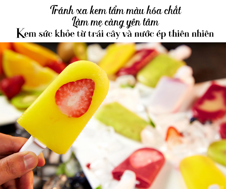Nguyên liệu làm nên những cây kem là những món trái cây tươi ngon mà bạn chuẩn bị và sẵn có nên tuyệt đối an toàn với mọi người.